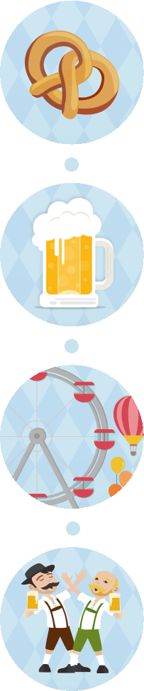 What is a ‘perfect day’ at the Oktoberfest? Simple: good hearty food and drink – and a lot of fun, too! Make sure you have enough time to take a really good look around the whole festival, too, as it would be a shame to miss the historic fairground rides, the food stands featuring delicious Bavarian snacks, and all sorts of other attractions, too. If it’s a spot in one of the big tents you’re after, make sure to get up early (unless you have a reservation), as the most popular ones tend to be packed by midday latest – even earlier on the weekends. You’ll find the Oktoberfest to be quieter and more family-friendly at lunchtime before the party really gets going in the evening.