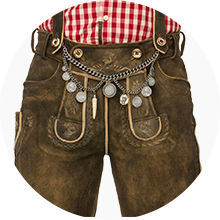 Although men don’t have quite the same range of accessories as women, Bavarian dress does offer a few options that other styles don’t: hats, for instance! Why not make a real entrance at the Oktoberfest with a Bavarian hat? Made of soft felt with a sturdy band around the crown, authentic examples also feature a Gamsbart, a tuft of mountain goat hair as proof of the wearer’s hunting credentials…