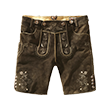 Loden is generally dark grey, brown, or green and is usually used to make a formal blazer for wear with lederhosen; the collar and lapels, placket, and cuffs are generally two-tone and embroidered. Woollen cardigans, too, often feature decorative stitching or other detailing. Some of the very best Bavarian jackets for lederhosen are also made of leather.