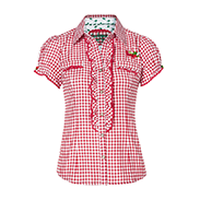 Women’s lederhosen can be combined with any number of tops: wear them with a Bavarian themed t-shirt for a relaxed, casual look. Go for stops with prints or patches to add even more character to your outfit. Alternatively, wear a checked blouse or a top with decorative embroidery to add a slightly dressier touch while keeping your style informal.